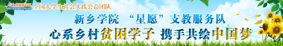 2013年,人民網招募50個大學生團隊組成“全國大學生社會實踐公益團隊”,走進基層開展多種形式的支教助學、生態保護主題公益服務活動。隨著暑期到來,各團隊已陸續開始活動,并將全過程通過大學生論壇進行網絡直播。新鄉學院“星愿”義務支教服務隊是50支重點團隊之一,他們在封丘縣應舉鎮的丁寨小學、付里莊小學開展了兩周暑期支教活動,還在這兩所貧困學校建立了愛心支教基地。回校后,他們將聯系社會公益組織和愛心人士捐贈教學物資。