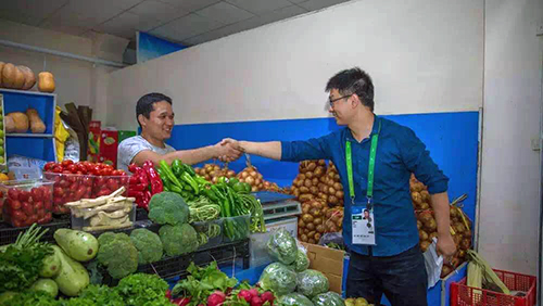 分發完盒飯,劉會彬說一會要去菜市場采購一次食材,邀請我們一同前往,小編當然欣然應邀。途中,又開心地交流起來。