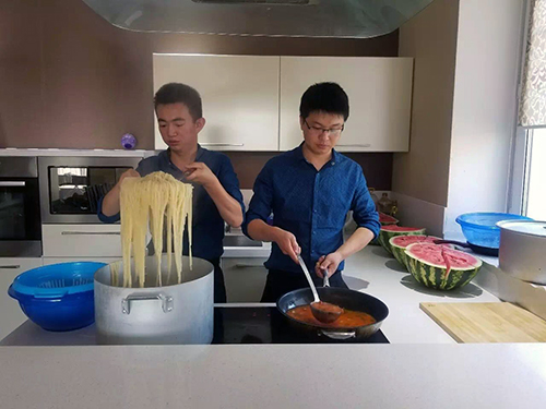 原來兩位大廚沒有任何幫手,從采購到洗菜、做飯、分飯再到送飯、洗洗刷刷全靠他們,這可比在酒店只當后廚辛苦多了。當地條件有限,沒有國內的明火燃氣,阿斯塔納當地廚房只有電磁爐,受熱較慢且不均勻,對于廚藝和耐力都是不小的挑戰。剛開始時,沒采購到食堂用大型電飯鍋,每天只能用普通家庭電飯鍋一鍋一鍋蒸,每天12鍋,從早忙到晚。從5月底來到阿斯塔納將近3個月,兩位大廚沒有完整休息過一天。