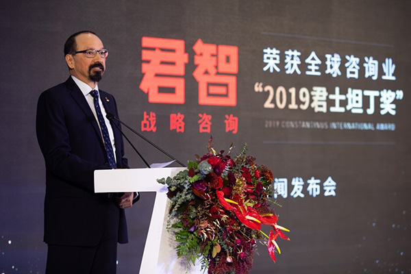 人民網(wǎng)北京11月4日電(薄晨棣)“中國(guó)戰(zhàn)略咨詢的全球突破”暨君智榮獲全球咨詢業(yè)“2019君士坦丁獎(jiǎng)”新聞發(fā)布會(huì)今日在北京舉行。國(guó)際管理咨詢協(xié)會(huì)理事會(huì)(ICMCI)主席德懷特,中國(guó)企業(yè)聯(lián)合會(huì)、中國(guó)企業(yè)家協(xié)會(huì)副理事長(zhǎng)李建明,中國(guó)企業(yè)聯(lián)合會(huì)咨詢與培訓(xùn)中心主任、國(guó)際管理咨詢協(xié)會(huì)理事會(huì)執(zhí)委會(huì)委員張艷艷,君智戰(zhàn)略咨詢董事長(zhǎng)謝偉山等嘉賓出席發(fā)布會(huì)并發(fā)表致辭,共話國(guó)際咨詢行業(yè)新動(dòng)向。